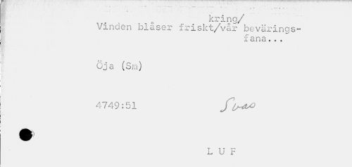 //// kring/ //// Vinden blåser friskt/vår bevärinos- //// fana... //// f * / v //// * / n \ //// Oj a (Sm] 4749:51 //// L U F ////