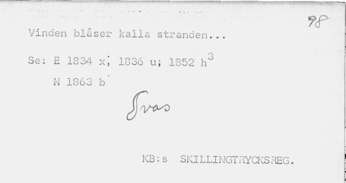 //// .. ffi r •-f . //// ' „ ?<t Vinden blåser kalla stranden... //// Se; E 1834 xj 1836 u; 1852 h3 N 1863 b' //// JoAtVt) //// KB:s SKILLINGTRYCKSREG. ////