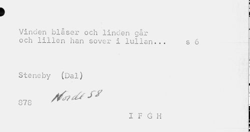//// > i //// ¦ //// Vinden blåser och linden går //// och lillen han sover i lullan... s 6 //// Steneby (Dal) //// i //// O I o //// I F G H ////