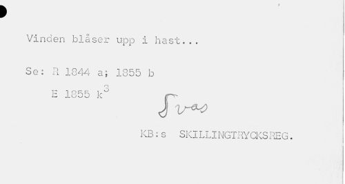 //// f //// Vinden blåser upp i hast... //// Se: R 1844 a; 1855 b //// E 1855 p- //// J //// KB:s SKILLINGTRYCKSREG. ////