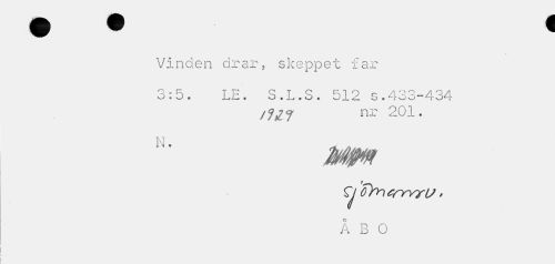 //// Vinden drar, skeppet far //// 3:5. LE. S.L.S. 512 s.433-434 //// tltf nr 201. //// Mim //// Q ohi^rrvru • //// k B O ////