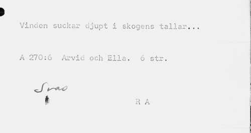 //// > //// Vinden suckar djupt I skogens tallar... A 270:6 Arvid och Ella. 6 str. //// i RA ////