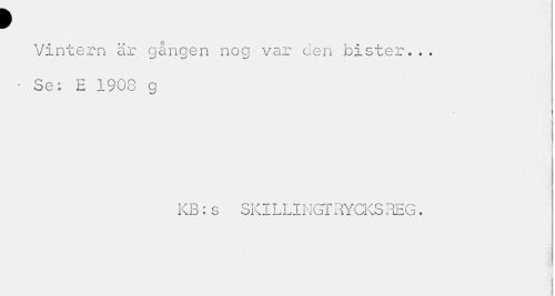//// f //// Vintern är gången nog var den bister... • Se: E 1908 g //// : i //// KB:s SKILLINGTRYCKSREG. //// I ////