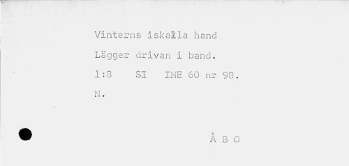 //// Vinterns iskalla hand Lägger drivan i band. 1:8 SI INE 60 nr 98. N. //// % ////