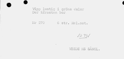 //// Vipp lustig i gröna dalar Der kärasten bor. //// Hr 270 6 str. Mel.not. //// /D_70/ //// WIEDE MS SÅIMGL. ////