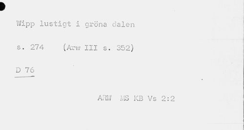 //// W j //// Wipp lustigt i gröna dalen //// s. 274 (Arw III s. 352) D 76 //// ARV/ MS KB Vs 2:2 //// / ////