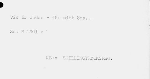 //// f //// Vis är döden - för mitt öga... //// r //// Se: E 1801 u ' //// KB:s SKlLLINGTRYCKS REG. ////
