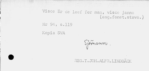//// Visce ar de leef for man, visce janne //// (eng.fonet.stavn.} //// Nr 94, s.119 Kopi //// SVA //// i tnf*\Gwru //// v //// REG.T.JOH.ALF R.LINDBÄCK ////