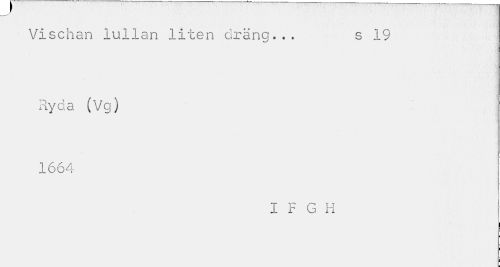 //// Vischan lullan liten dräng... s 19 //// Ryda (Vg) 1664 //// I F G H //// ; ////
