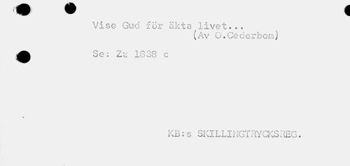 //// Vise Gud för äkta livet... //// (Av Q.Cederbom) //// 0 Se: Z^ 1838 c //// \ //// KB: g SKILLINGTRYCKSPvEG. ////