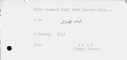 //// "V. //// Viss visseri lull skit byxera full... //// s 54 tf/nét //// V.Tunhem (Vg) //// 2143 I F G H //// 9 Vaggv. barnv. ////