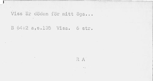 //// •'1 //// ' /i I //// . . . * //// Viss är döden för mitt öga... //// 0 //// B 64:2 a,s.l35 Visa. 6 str. //// » //// R A ////