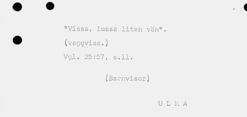 //// "Vissa, lussa liten vän". ^^ (vaggvisa.) //// Vgl. 25:57, s.ll. //// (Barnvisor) //// U L M A ////