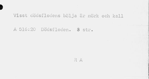 //// ? //// Visst dödsflodens bölja är mörk och kall A 516:20 Dödsfloden. 3 str. //// n A //// ,1 A ////