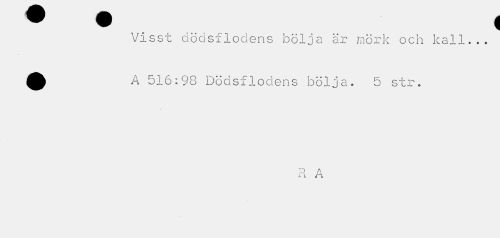 //// Visst dödsflodens bölja är mörk och kall... £ A 516:98 Dödsflodens bölja. 5 str. //// A //// ii ////