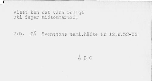 //// Visst kan det vara roligt uti fager midsommartid, //// 7:5. PA Svenssons saml.häfte Nr 12,s.52-53 //// ÅBO //// t ////