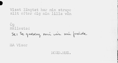 //// 9 //// Visst längtat har min strupe //// allt efter dig min lilla vän * //// Og //// Hälles "c a q c //// Sc» ^ ooL&Lsksl irvwu u*vw Irwvu //// i //// HA Visor //// NORD.MUS. ////