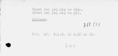 //// » * " //// Visst tar jag mig en båge, //// visst tar jag mig en pil, //// Lekdans, //// rucc*-A» irx» «»..-: « it».. ¦wo^.i^iih.-h» //// t>n (v //// 5:4. LF. S.L.S. 61 s.20 nr 15. ////