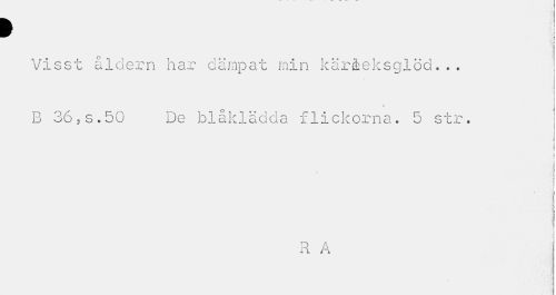 //// > ' //// Visst åldern har dämpat min kärleksglöd... //// < //// B 365s.50 De blåklädda flickorna. 5 str. j //// i i i i //// Å //// i i //// D A i i ri ////