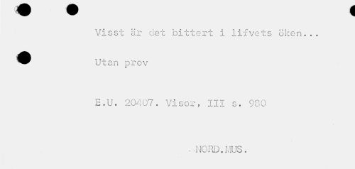 //// Visst är det bittert i lifvets öken... Utan prov //// E.U. 20407. Visor, III s. 980 //// ¦ •NORD. MUS. ////