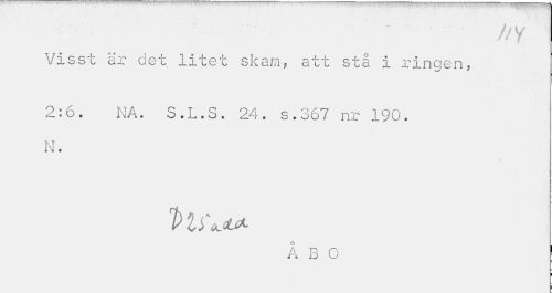 //// ¦ " ' ... ¦ ^ //v //// Visst är det litet skam, att stå i ringen, //// 2:6. NA. S.L.S. 24. s.367 nr 190. N. //// k B O //// : I ////