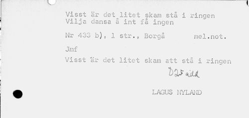 //// Visst är detolitet skam stå i ringen Vilja dansa ä int få ingen //// Nr 433 b), 1 str., Borgå mel.not. //// Jmf //// Visst ar det litet skam att stå i ringen Q LAGUS NYLAND ////