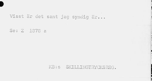 //// ¥ //// m //// Visst är det sant jag syndig är... Se: Z 1378 a //// _ I //// KB:s SKlLLINGTRYCKSREG. ////