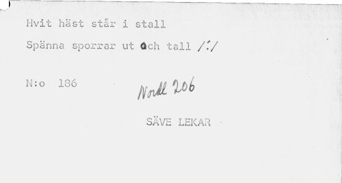 //// y • • //// Hvit häst står i stall //// « //// Spänna sporrar ut Öch tall /.'/ n:° 186 //// SÄVE LEKAR • //// I ////