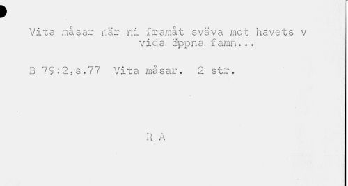 //// f //// Vita måsar när ni framåt sväva mot havets v //// vida oppna famn... //// B 79:2,s.77 Vita måsar. 2 str. //// R A ////