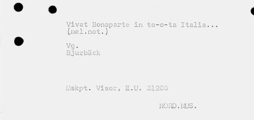 //// • • < //// Vivat Bonaparte in to-o-ta Italia... //// ^ i il G J- « i i O L t j //// Bjurbäck //// iviSKp x . v i s or ; n . u . oizu o //// NORD. MUS. ////