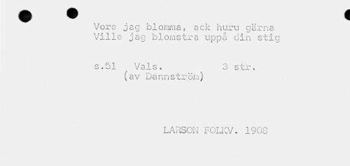 //// Vore jag blomma, ack huru gärna Ville jag blomstra uppå din stig //// s.51 Vals. 3 str. //// (av Dannström) //// LARSON FOLKV. 1908 ////