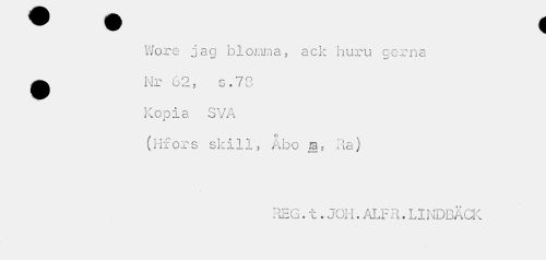 //// Wore jag blomma, ack huru gerna a Nr 62, s .78 //// T f • O T T f< //// Kopia SVA //// (Hfors skill, Åbo m, Ra) //// REG. t. JOH • ALFR. LINDBÄCK. ////