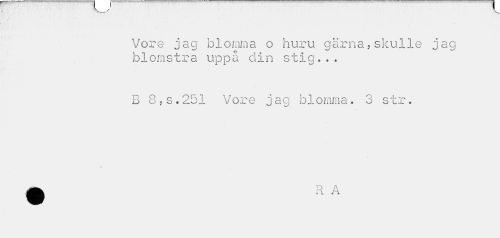 //// Vore jag blomma o huru gärna,skulle jag blomstra uppå din stig... //// B 8,s.251 Vore jag blomma. 3 str. //// t ////