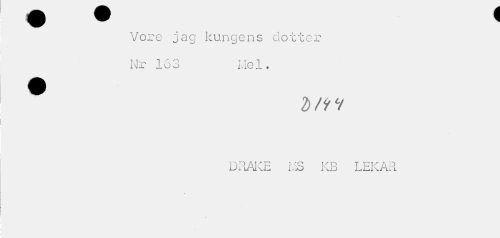 //// Vore jag kungens dotter Nr 163 Mel. //// d/91 //// 'HD AKP / 'Q KO T Ci/AD //// Un/AK-L. ivi o l\u LjCi\>U l ////