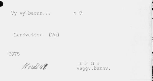 //// w //// Vy vy' barns... s 9 //// Landvetter (Vg) 3975 f //// ^^^ imi ^'sj ^ , j //// Vaggv. barnv. ////