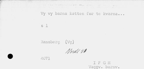 //// • » "t. v " - * "— — • tf- n _ •—» » .«'-« . . //// * « » f. _ f ¦ ,«. . //// Vy.vy barna katten for te kvärna... //// g 1 //// Ransberg. (Vg) //// I F G H Vaggv. barnv. ////