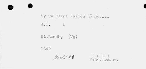 //// Vy vy barna katten hänger^l s.l. 6 //// St.Lundby (Vg) //// 1842 //// /X" r$ Va g g v(; barnv. ////