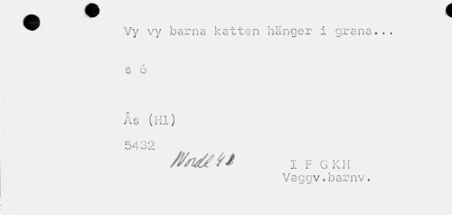 //// ^ Vy vy barna katten hänger i grana... //// s 6 //// Ås (Hl) //// o o //// Afaétt* IFGKH //// Vaggv.barnv. ////