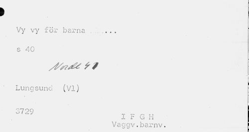 //// > //// Vy vy för barna ... s 40 //// Lungsund (VI) = //// * //// 3729 //// I F G H //// Vaggv.barnv. | ////