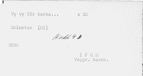 //// Vy vy för barna,.. s 20 1 //// Grimeton (Hl) //// ' 3596 //// v //// 1 F G II ' //// Vaggv. barnv. //// ¦ I ////