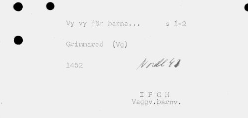 //// Vy vy för barna... s 1-2 //// ^^ Gr i m/n a r e d (V g) //// 1452 //// I F G H Vaggv.barnv. ////