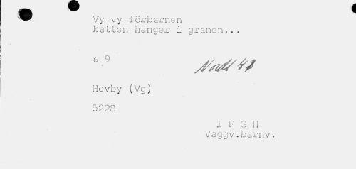 //// Vy vy för b ar nen //// katten hänger i granen..-. //// 5 9 /faffS //// Hovby (Vg) //// R OOO vJ O //// I F G H Vaggv.barnv. ////