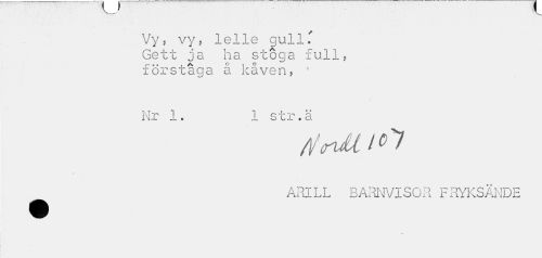 //// Vys vy, lelle gullT Gett ja ha stoga full, förstaga ä kåven, 1 //// Nr 1. 1 str .ä //// ARILL BARNVISOR FRYKSÄNDE //// m ////