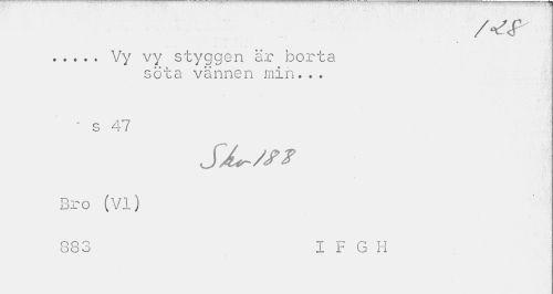 //// /V<T //// ... Vy vy styggen är borta //// söta vännen min... //// - s 47 Bro (VI) //// 883 I F G H ////