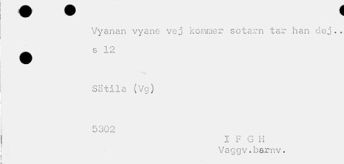 //// Vyanan vyane vej kommer sötarn tar han dej.« s 1 o //// * % //// Sätila (Vg) 5302 //// I F G H Vaggv.barnv. ////