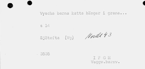 //// Vyscha barna katta hänger i grana... s 14 //// Sjötofta (Vg) ///n^S^3 //// ¦ 3535 //// I F G H Vaggv.barnv. ////