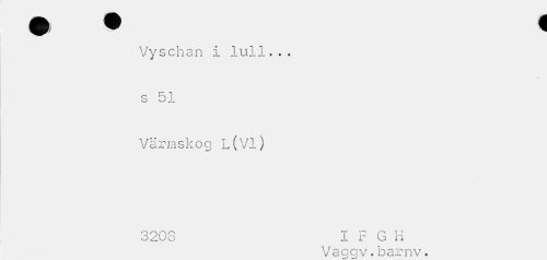 //// Vyschan i lull... s 51 //// Värmskog L(Vl) //// 3208 I F G H //// Vaggv.barnv. ////