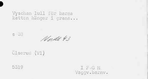 //// w //// I //// Vyschan lull för barna katten hänger I grana... //// O o o b ocj //// Ölserud (VI) //// 5319 I F.G H //// Vaggv. barnv. ////