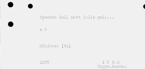 //// Vyschan lull rnett lella gull... //// <-, o //// S u //// ¦ Härjevad (Vg) //// 1075 I F G H //// Vaggv.barnv. ////