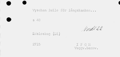//// Vyschan lulle för långskanken... //// » K./ //// • Q A ° //// b ^r Q //// Edsleskog (Dl) //// O "7 1 R T "C r* T T //// 1 x o i. Jr U i l //// Vaggv.barnv. ////